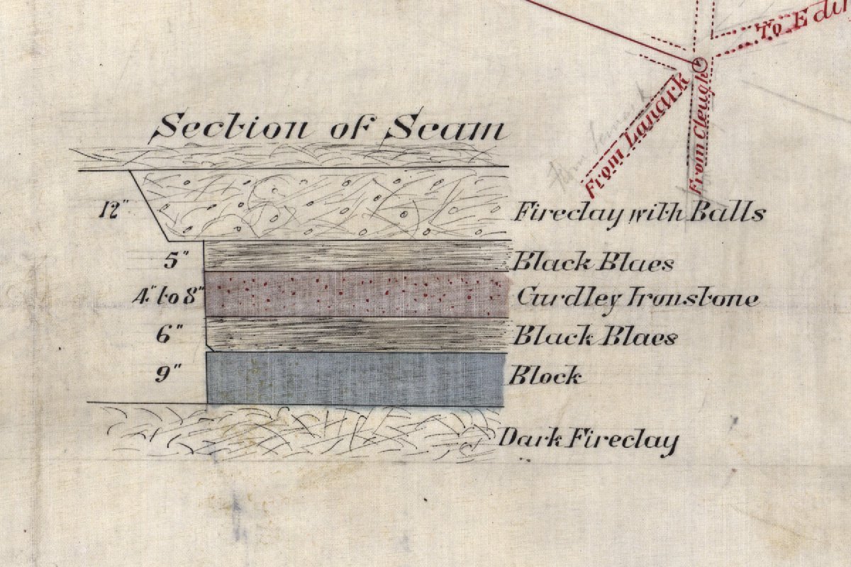 Pit in the land of Handaxwood, to the Curdly Ironstone at 12 fathoms. The pit does not appear on the 1895 OS map which suggests that this was the last ironstone pit sunk in the area, which operated between 1896 and 1901.