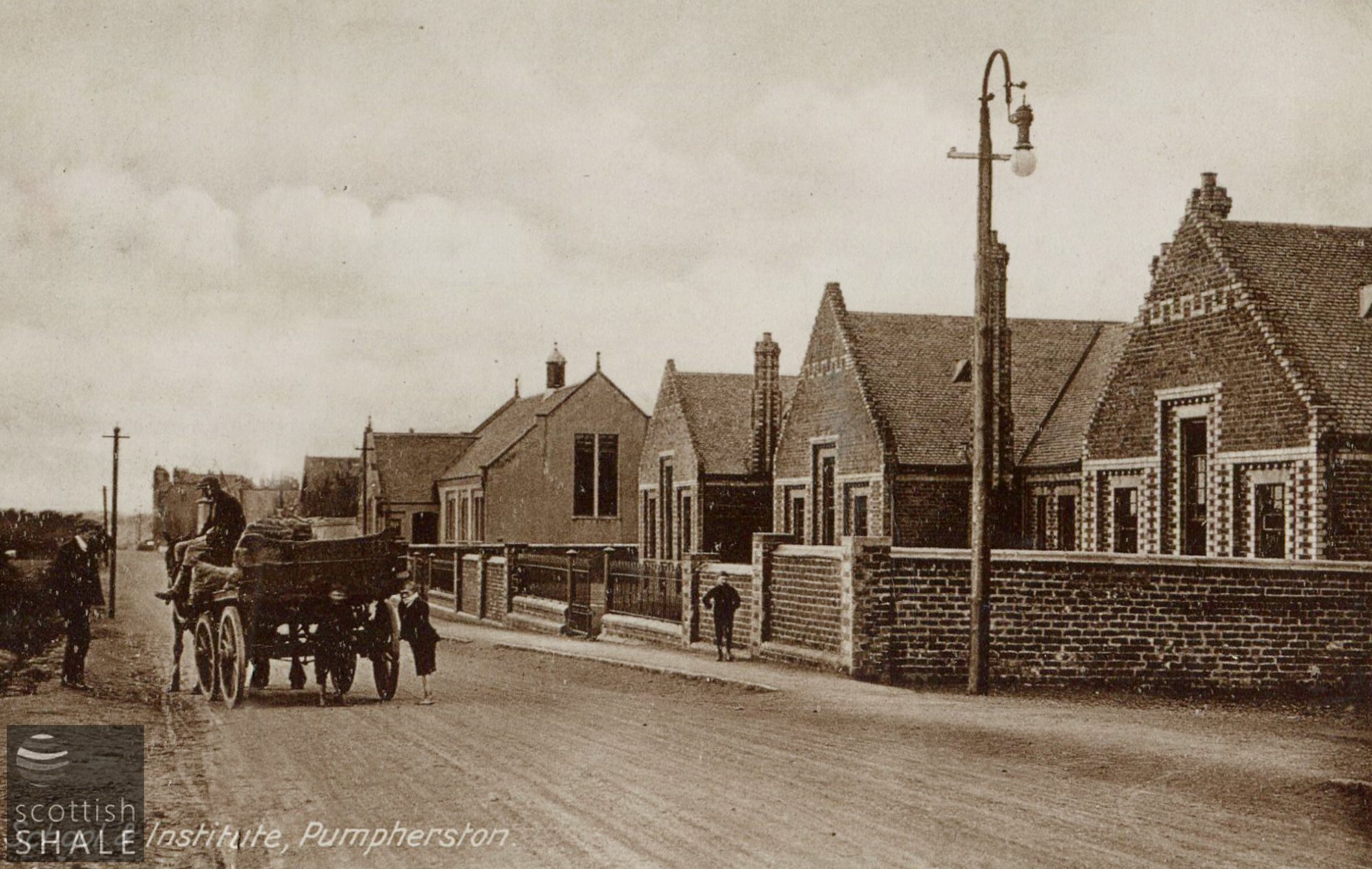 Postcard - "School and Institute, Pumpherston" Black and white photograph of 'School and Institute, Pumpherston'.