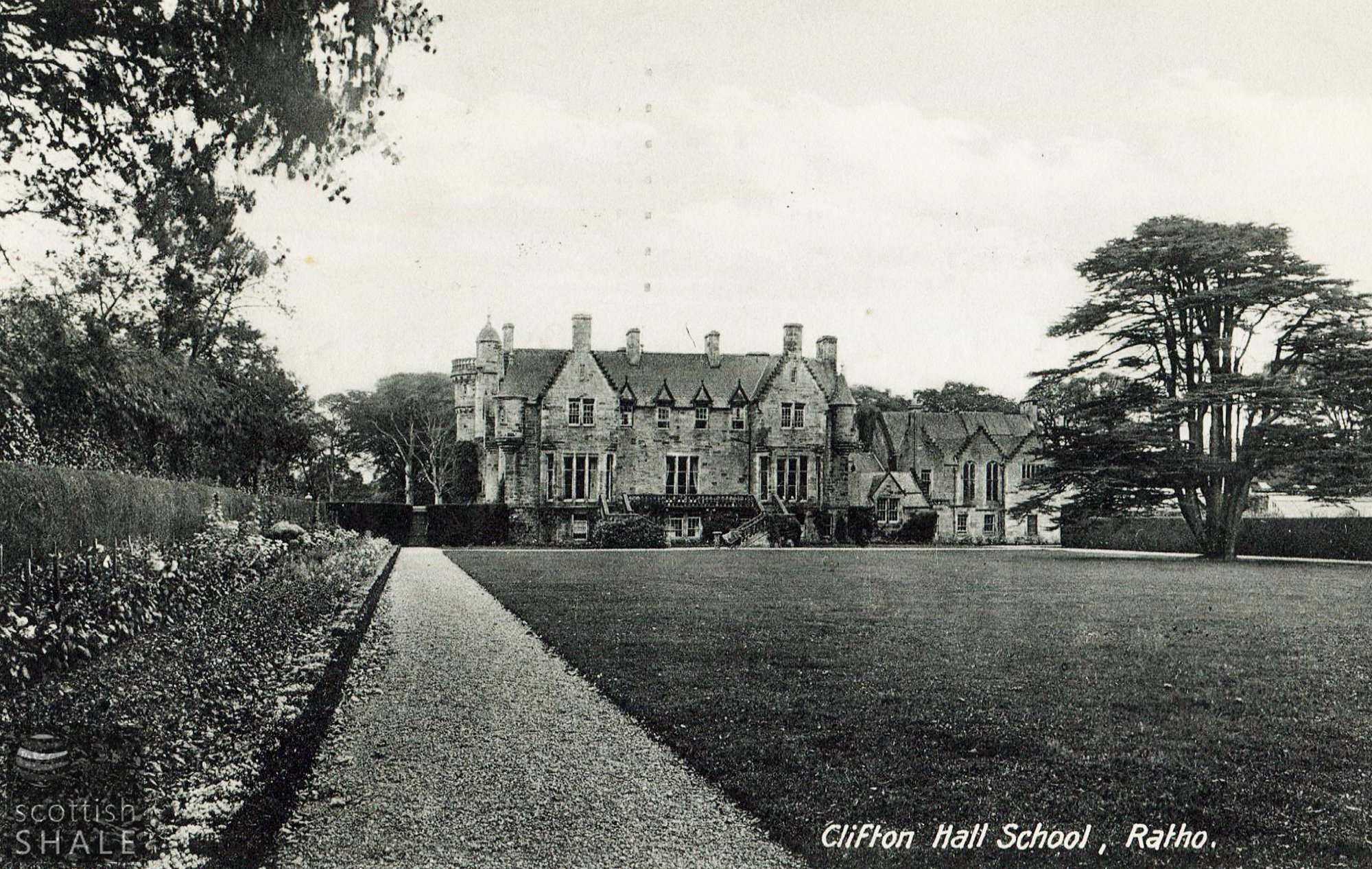 Postcard - "Clifton Hall School, Ratho" B&W printed postcard showing distant view of Clifton Hall