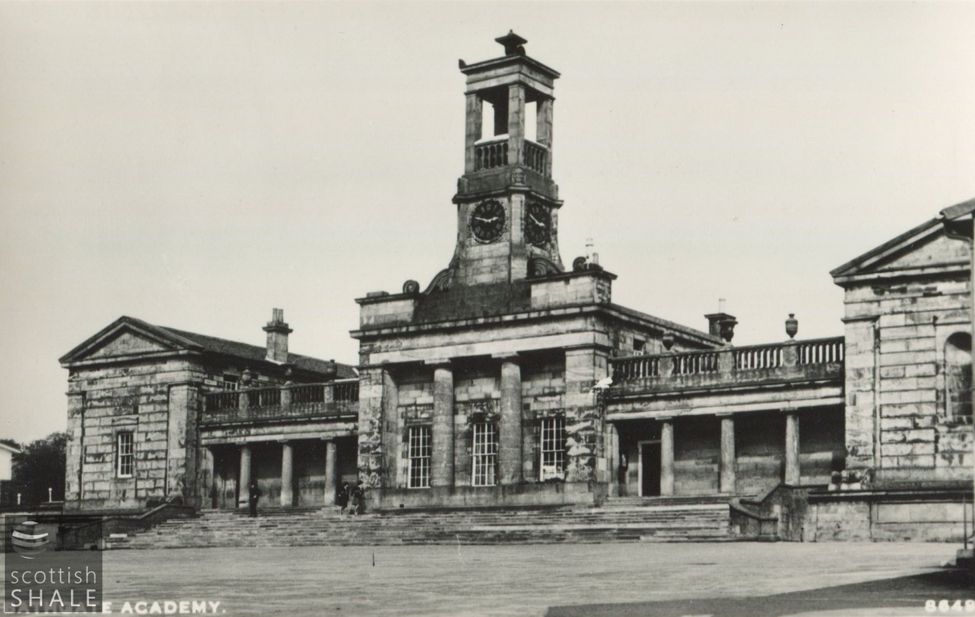 Postcard - "Bathgate Academy" B&W photographic photo showing the front elevation of Bathgate Academy