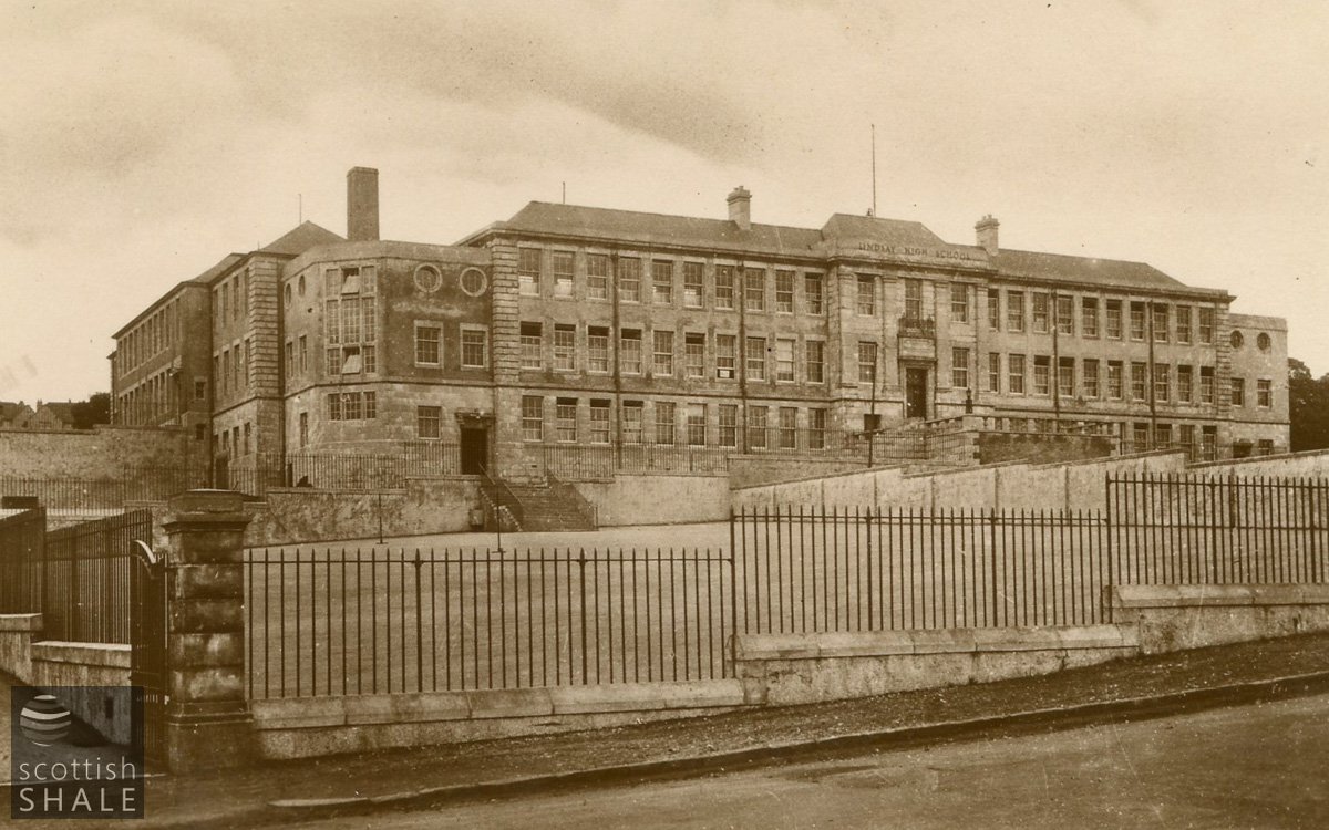 Postcard - "Lindsay High School" B&W photographic postcard showing southern elevation if Lindsay High School, Bathgate